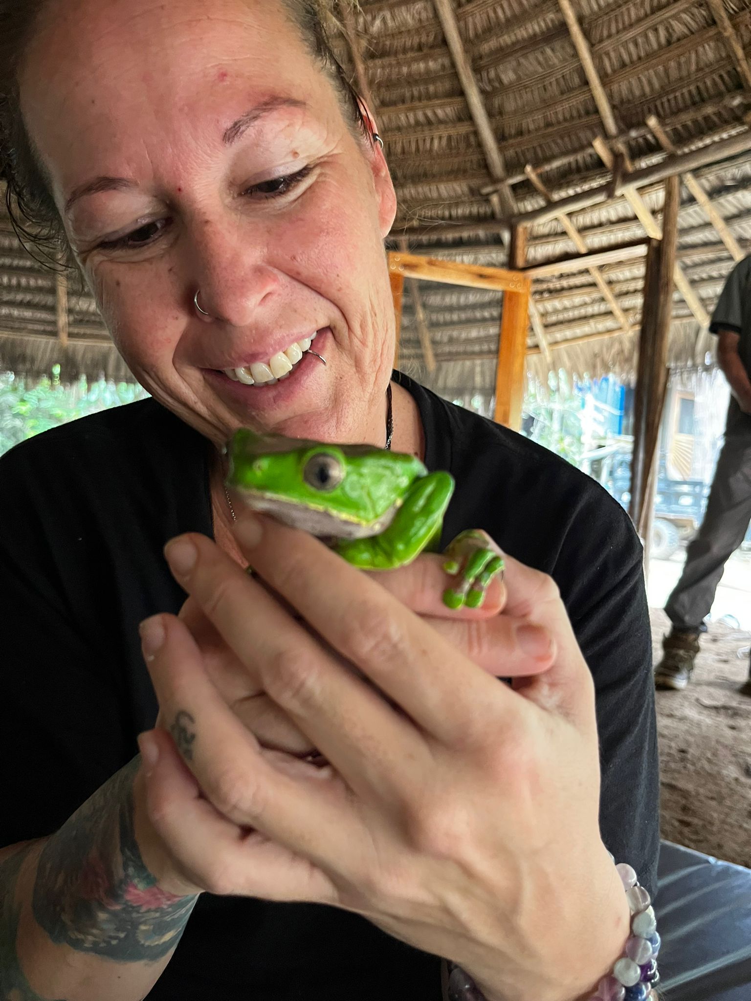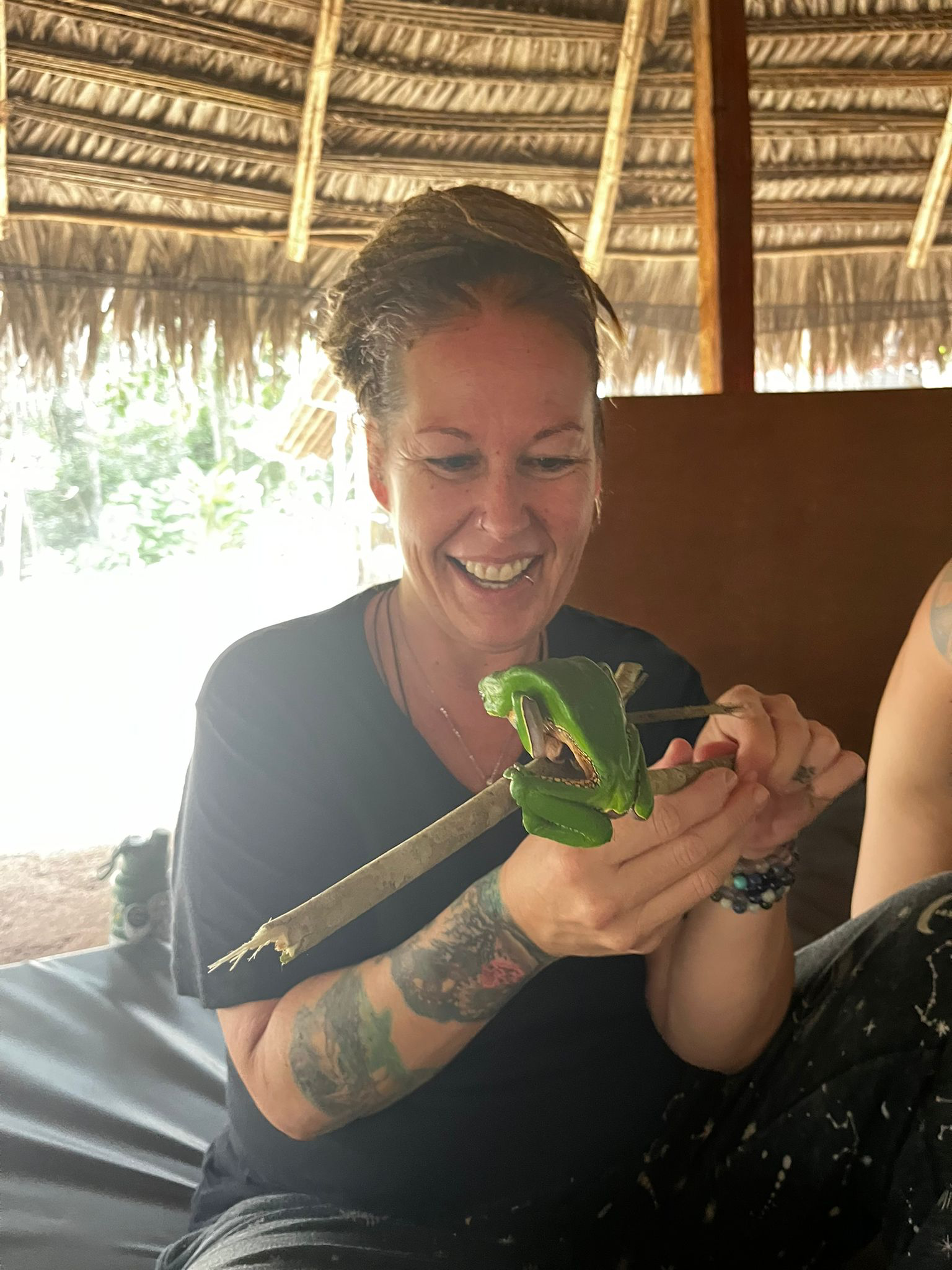 Since 2021, I’ve immersed myself in sacred medicines like Ayahuasca, Kambô, Rapé, and Sananga, while expanding my training in Reiki, sound therapy, women’s circles, and somatic healing. In 2025, I completed my Advanced Kambô training in the Amazon jungle and began studying Integrative Health working towards a Bachelors Degree from ACHS. Every chapter of my life has shaped the way I now hold space—with reverence, presence, and deep love.